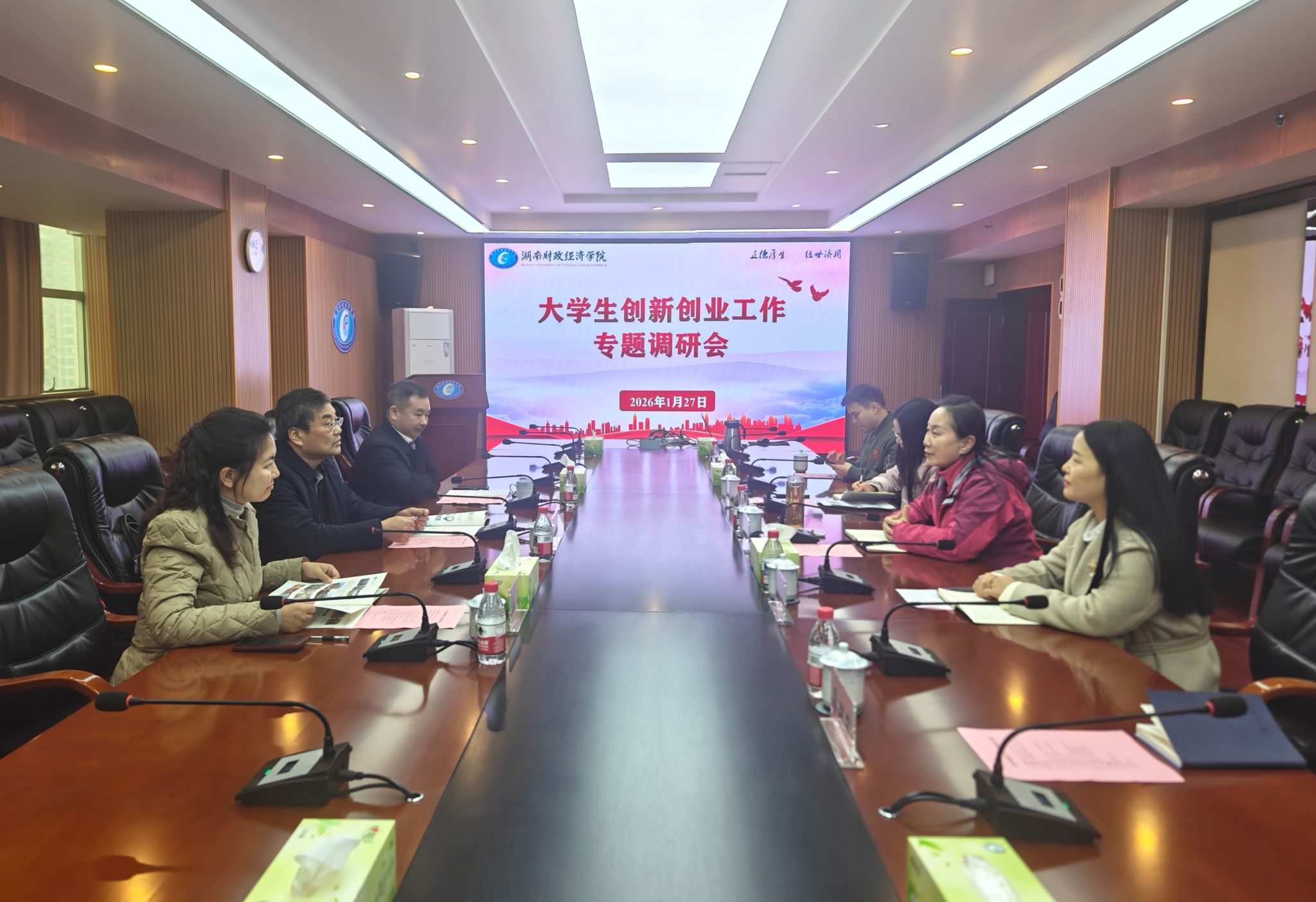 (本网讯)1月27日,湖南省教育厅一级巡视员柴世钦、学生处副处长陈衡、省支持大学生创业工作协调机制办公室秘书处副处长吴岚来校调研大学生创新创业工作。校党委副书记、校长苏玲,创新创业与人工智能学院负责人及教师代表参加调研座谈。会议现场苏玲介绍了世界杯官网办学特色、发展成效及人才培养理念,重点阐述了世界杯官网在创新创业教育方面的战略布局、资源投入与实践探索,详细说明了以双创教育赋能人才培养、服务大学生创业发展的工作思路与实施路径。...