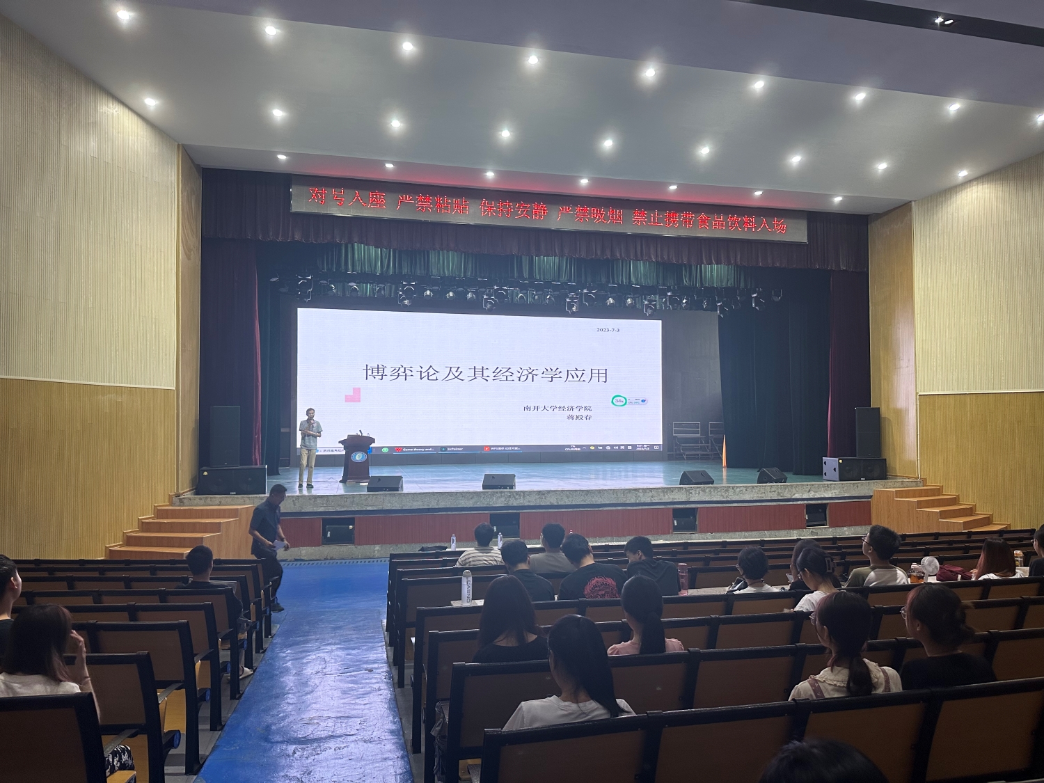 (本网讯)7月3日至4日,世界杯官网邀请南开大学蒋殿春教授来校讲授暑期课程《微观经济学》,来自世界杯官网、湘潭大学、湖南大学、湖南师范大学、湖南工商大学等高校的共计950余名师生参加学习。活动现场蒋殿春从Nash均衡、子博...