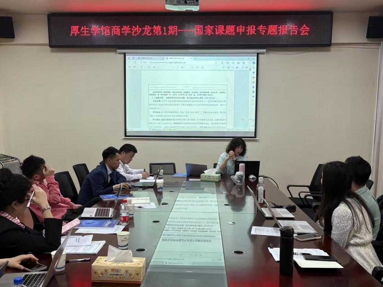 (本网讯)4月9日,工商管理学院在办公楼414-1会议室举办厚生商学沙龙第1期——国家课题申报专题报告会。院长杨鹏主持会议。蒋碧云、邹浩、黎钰林、汤春华、何霞辉、廖玉玲、谭旭、龙小凤、周坤霖、余千等10位博士依次展示了他们的国家社科基金课题申报书,详细阐述了选题的初衷和背景,清晰勾勒了研究框架和预期成果,展现了深厚的学术功底和严谨的科研态度。期间,教师们就文献综述的撰写技巧、研究目标与内容的逻辑关联等课题申报中的关键问题进行了提问和深入探讨。...