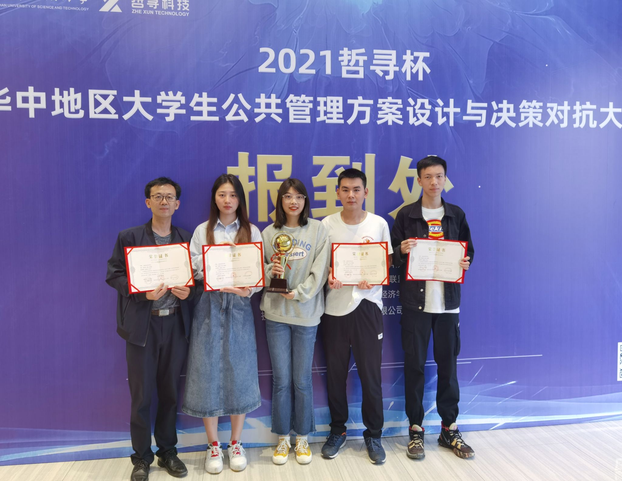 法学与公共管理学院学子组成的学校代表队荣获首届“哲寻杯”华中地区大学生公共管理方案设计与决策对抗大赛一等奖
