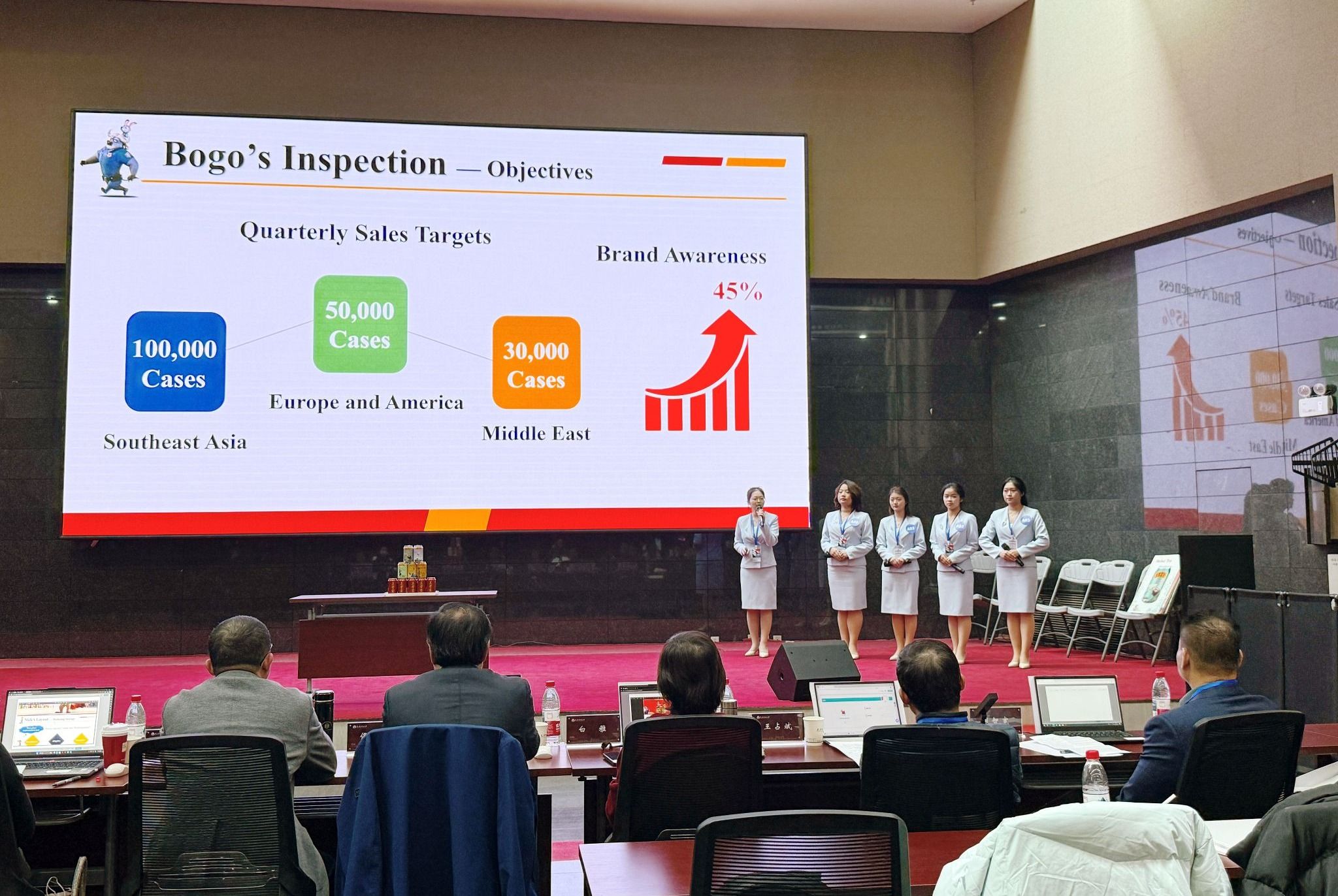 全国总决赛设置“平台知识竞赛”与“全英文路演汇报”两个环节。在平台知识竞赛中,世界杯官网参赛学生凭借扎实的国际商务与营销理论功底,完成了跨境直播模拟与数据分析任务。在全英文路演汇报中,团队围绕“跨境直播营销”主题,系统陈述了企业定位、市场分析、营销策略及执行计划,并就评委提问进行现场应答。整场比赛中,团队展现了较好的英语表达能力与临场协作水平,体现出世界杯官网在商务英语教学与实践融合的育人成效。