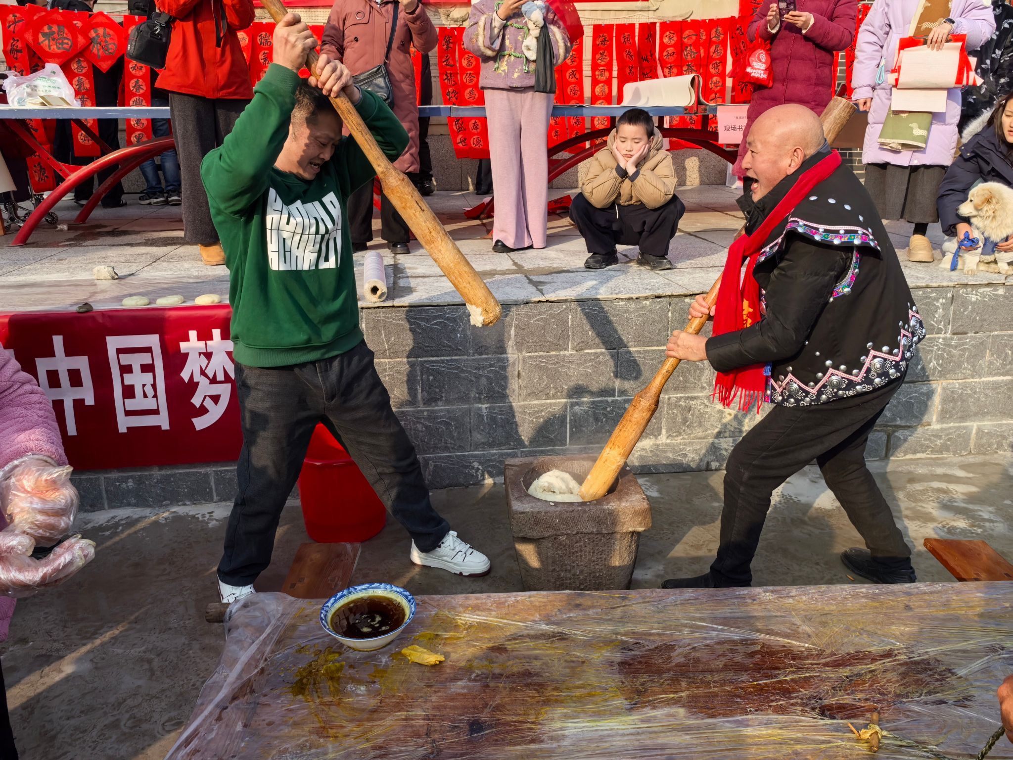村民们正在打糍粑