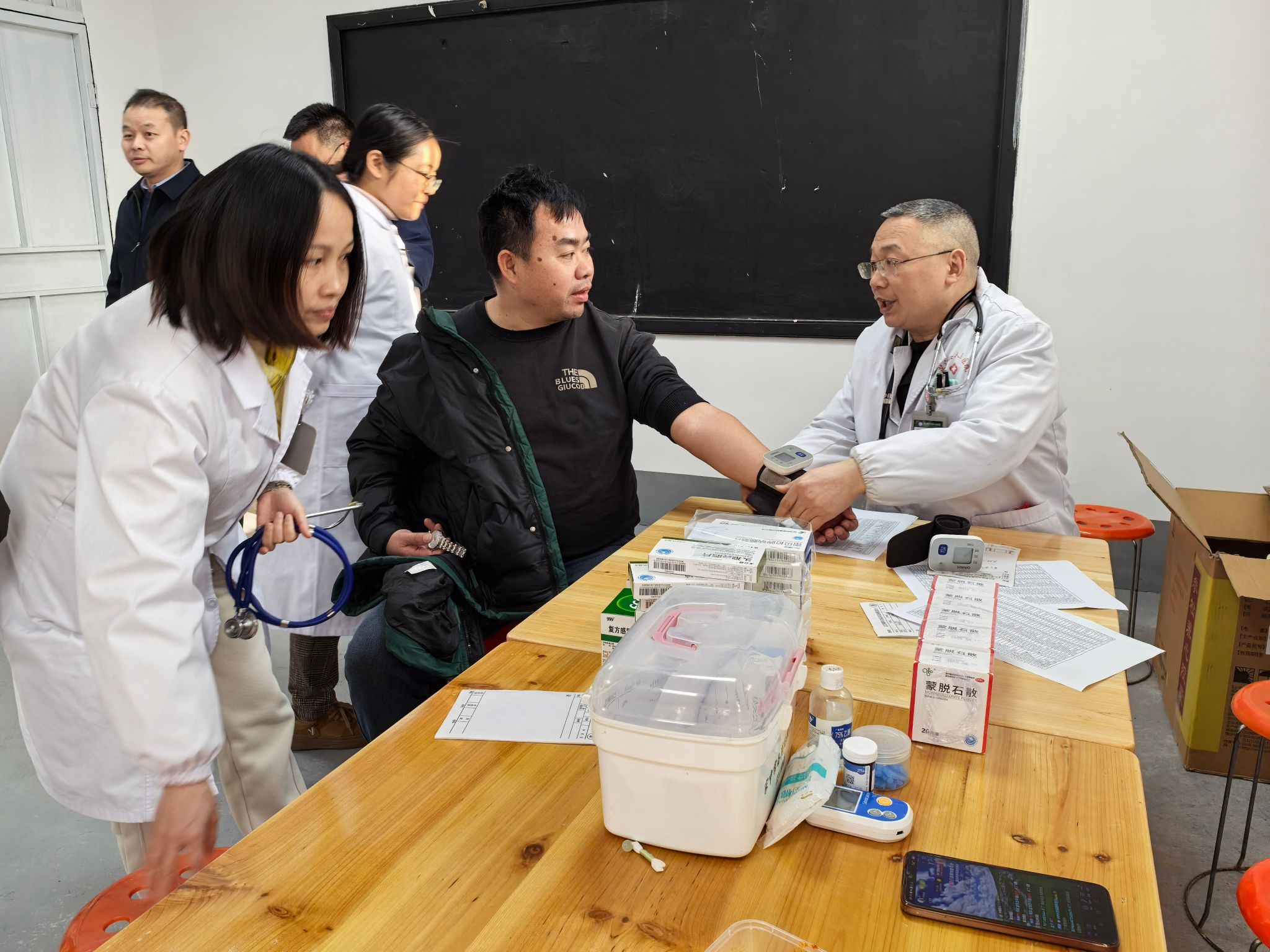 医护人员为老人量血压