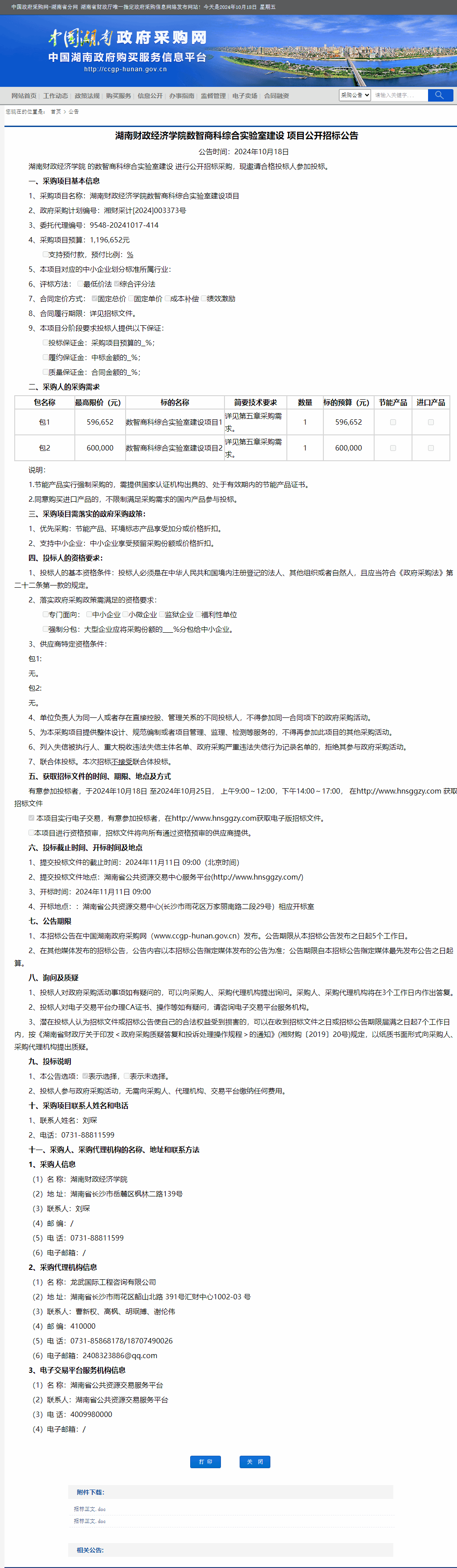 湖南省政府采购网:2026世界杯官网数智商科综合实验室建设项目公开招标公告