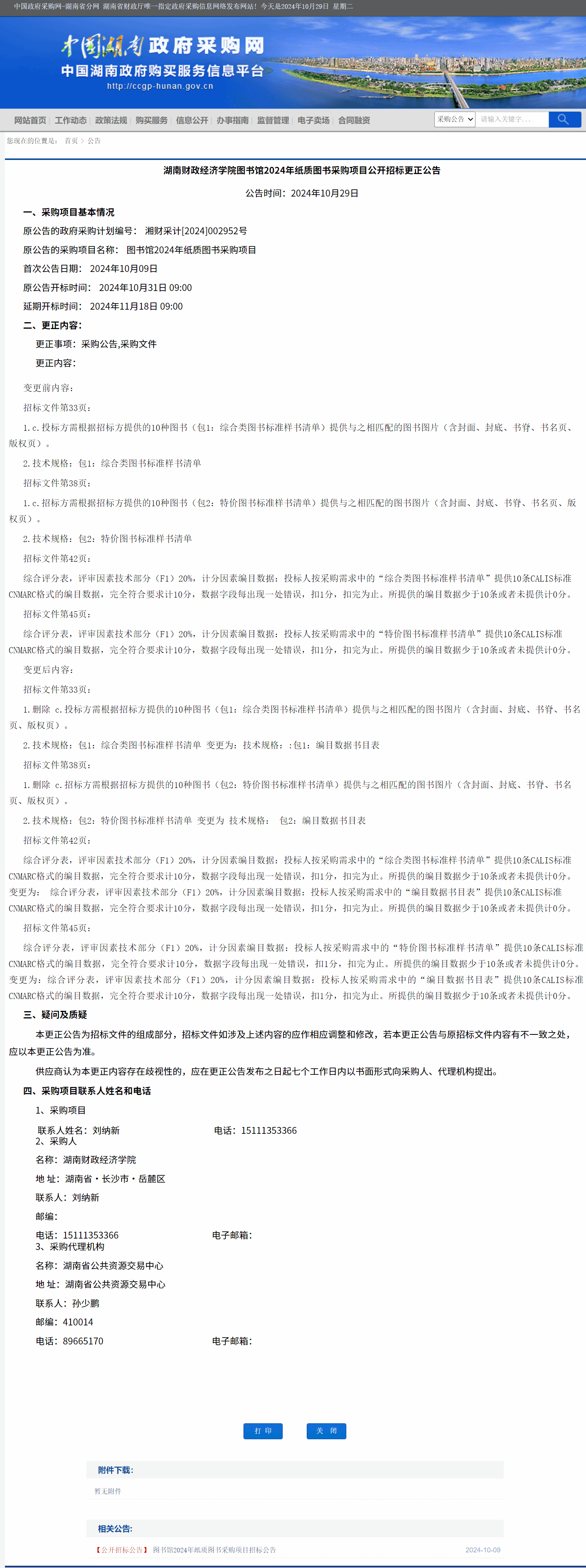 湖南省政府采购网:2026世界杯官网图书馆2024年纸质图书采购项目公开招标更正公告