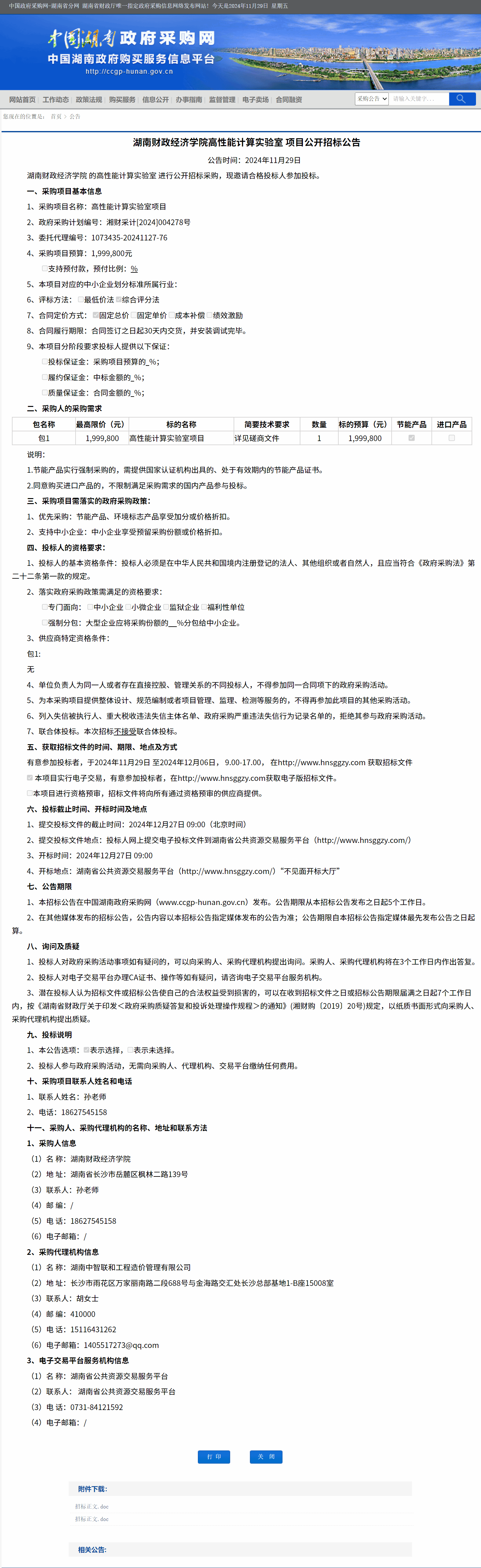 湖南省政府采购网:2026世界杯官网高性能计算实验室项目公开招标公告