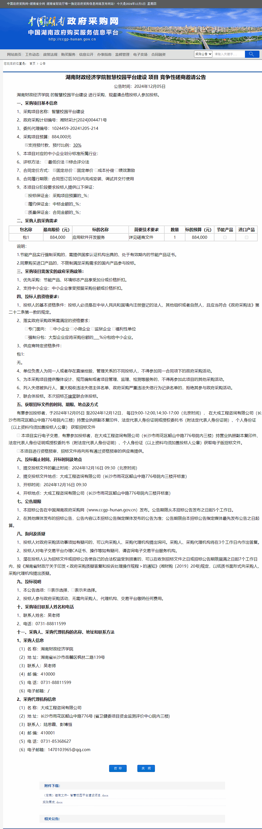 湖南省政府采购网:2026世界杯官网智慧校园平台建设项目竞争性磋商邀请公告