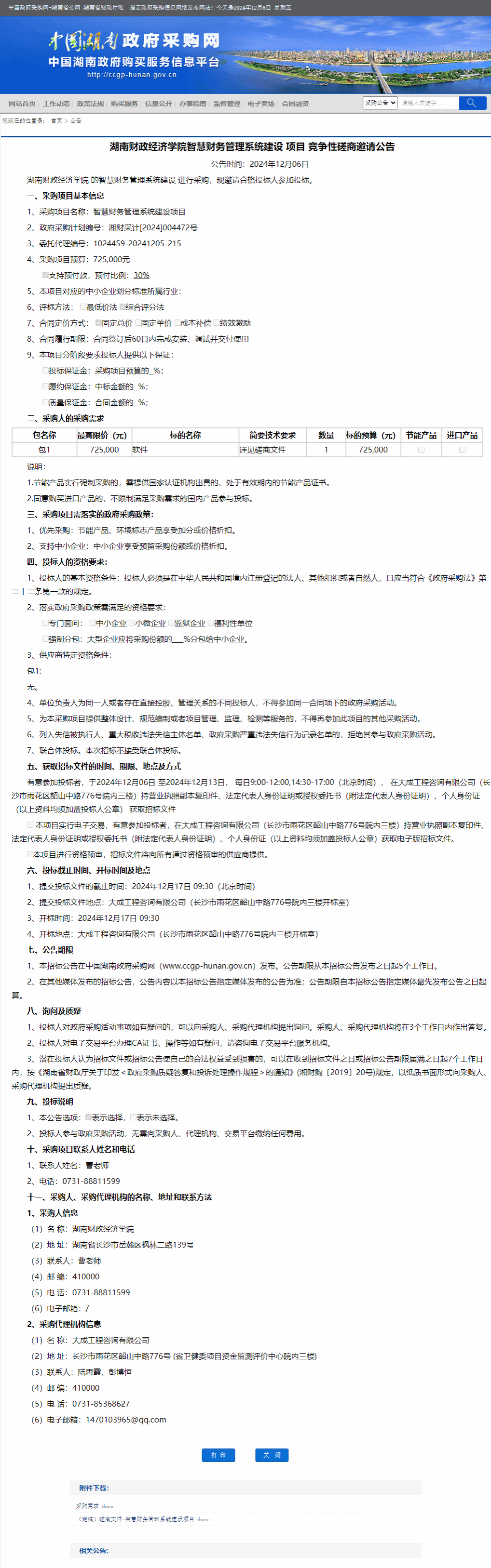 湖南省政府采购网:2026世界杯官网智慧财务管理系统建设项目竞争性磋商邀请公告
