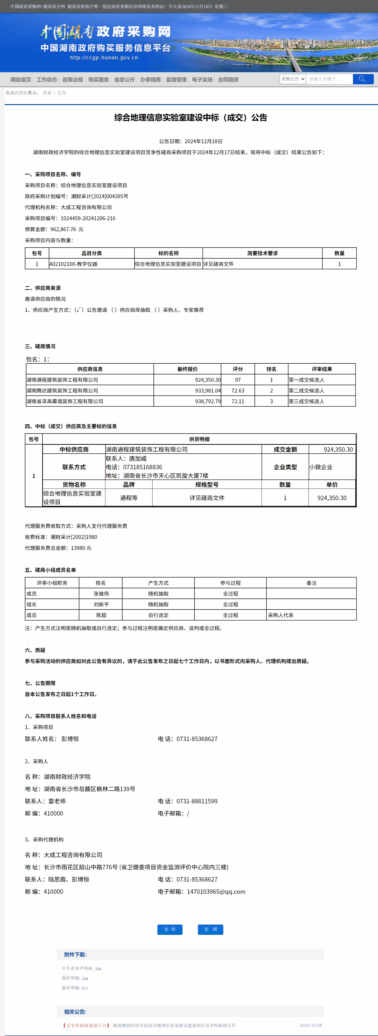 湖南省政府采购网:2026世界杯官网综合地理信息实验室建设中标(成交)公告