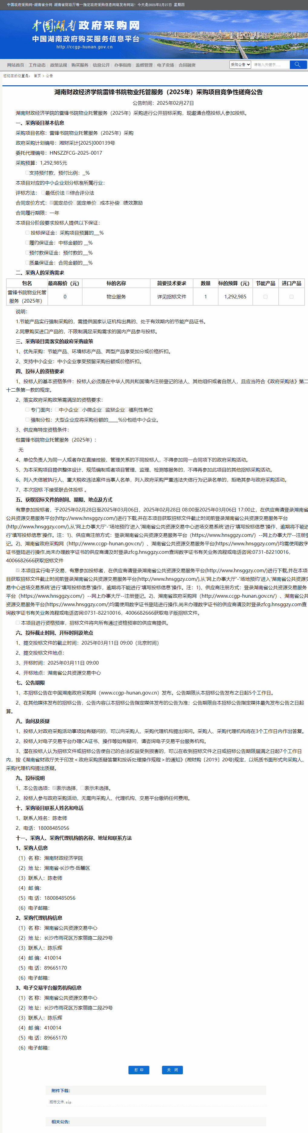 湖南省政府采购网:2026世界杯官网雷锋书院物业托管服务(2025年)采购项目竞争性磋商公告