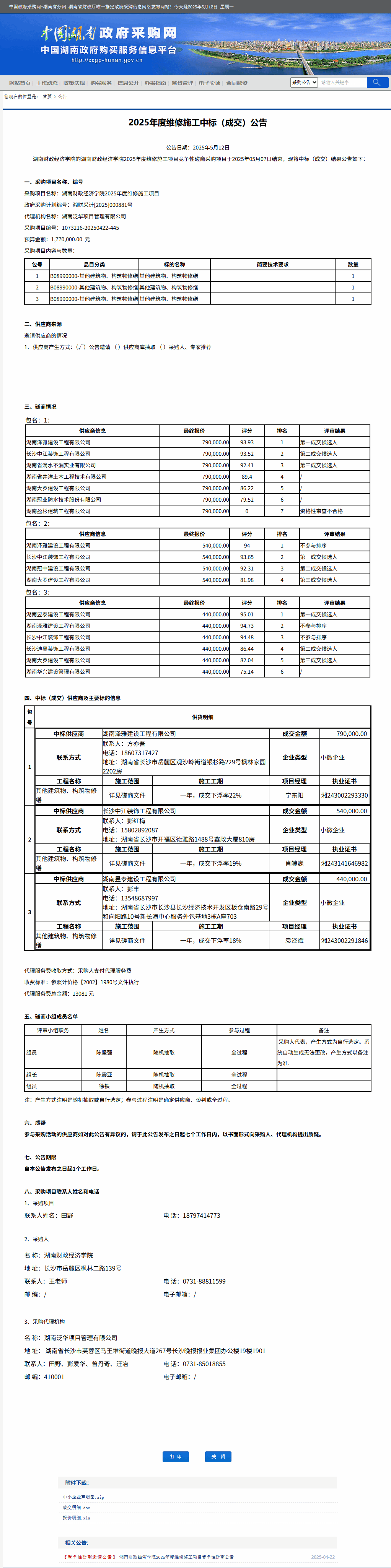 湖南省政府采购网:2026世界杯官网2025年度维修施工中标(成交)公告