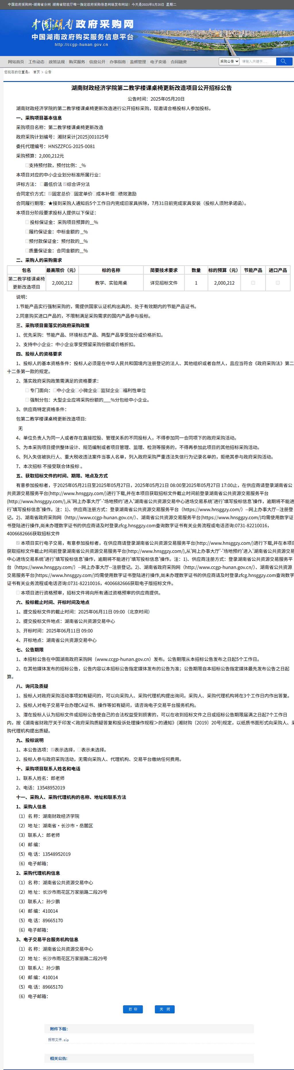 湖南省政府采购网:2026世界杯官网第二教学楼课桌椅更新改造项目公开招标公告