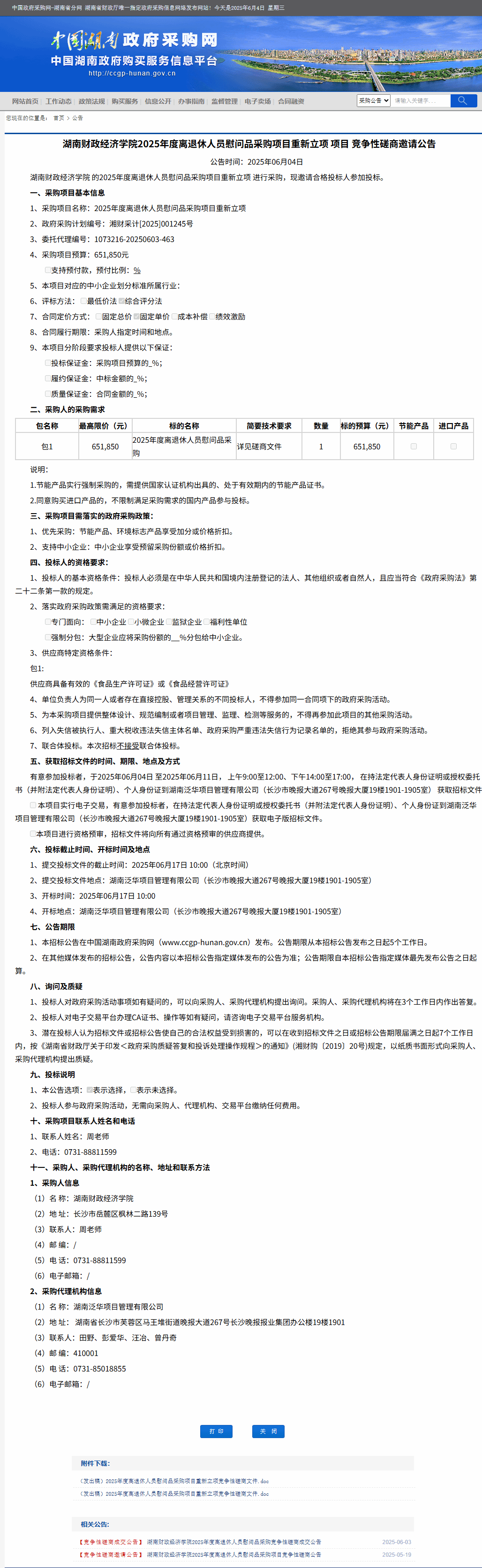 湖南省政府采购网:2026世界杯官网2025年度离退休人员慰问品采购项目重新立项 项目 竞争性磋商邀请公告