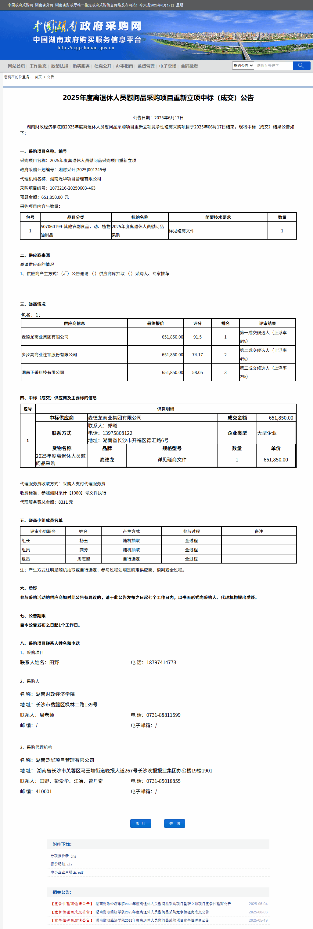 湖南省政府采购网:2026世界杯官网2025年度离退休人员慰问品采购项目重新立项中标(成交)公告