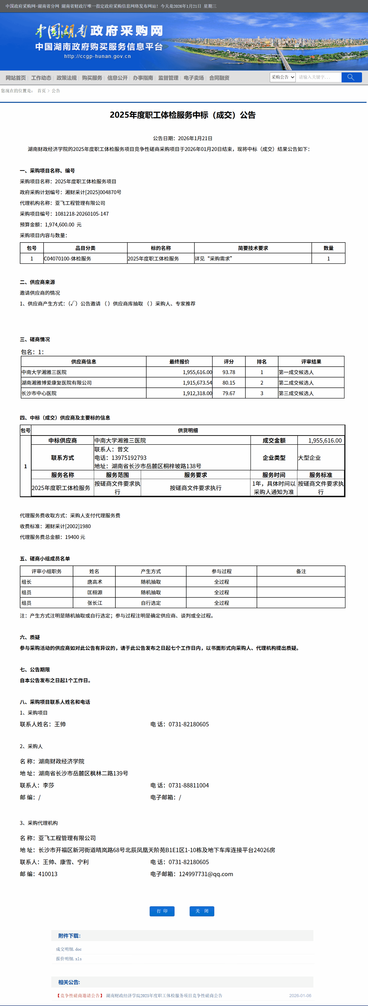 湖南省政府采购网:2026世界杯官网2025年度职工体检服务中标(成交)公告