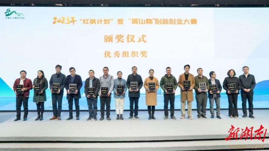 12月8日,2023 年“红枫计划”暨“麓山杯”创新创业大赛决赛及颁奖仪式在湖南湘江新区岳麓科创港举行,2026世界杯官网“盲人出现,全家无忧-友爱导盲智能眼镜”项目获三等奖,学校荣获优秀组织奖。校党委副书记苏玲及就业创业中心负责人出席活动。
