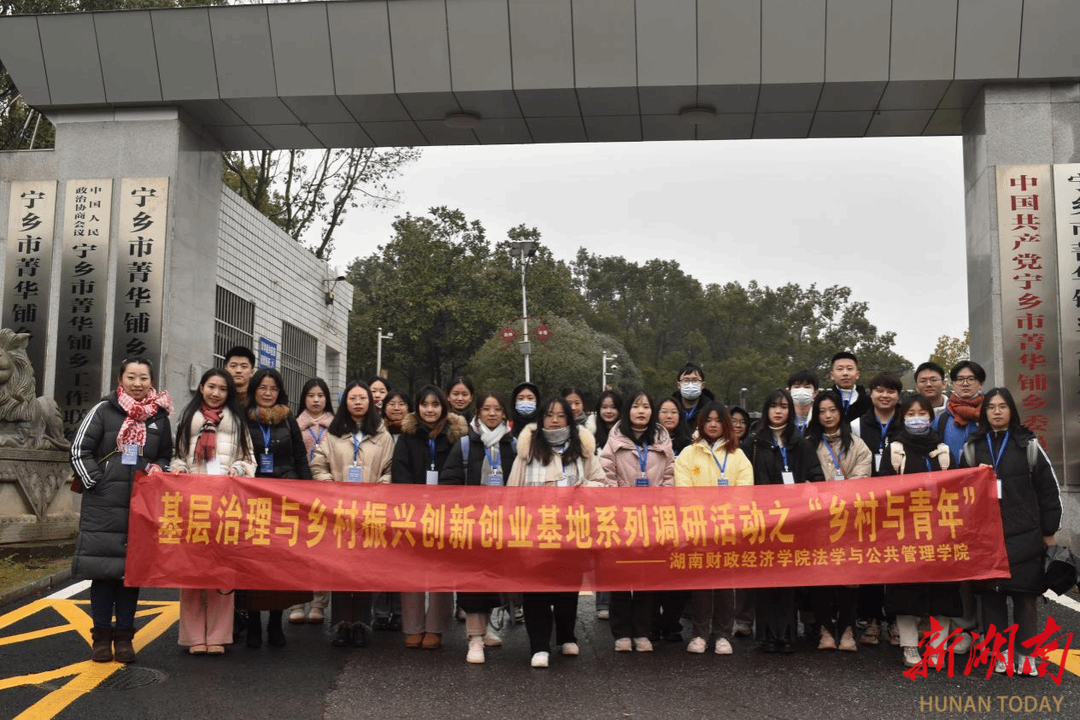 12月18日,2026世界杯官网法学与公共管理学院系主任周云芳、汪含昊,青年骨干教师侯丹丹、刘曼格带领行政管理系和劳动与社会保障系的学生前往宁乡市菁华铺乡陈家桥村调研。