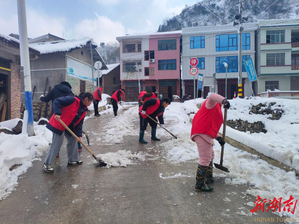 为防止积雪成冰影响居民出行安全,法学与公共管理学院2023级法学二班贺镜霖加入到临武县舜锋镇街道组织开展的扫雪除冰活动中。“虽寒风刺骨,但我们扫雪除冰的热情和工作效率丝毫不减。经过两个多小时的奋战,街道主要区域干道、小区院落的积雪基本清扫干净,成功为居民出行清扫出了一条平安路、暖心路。”