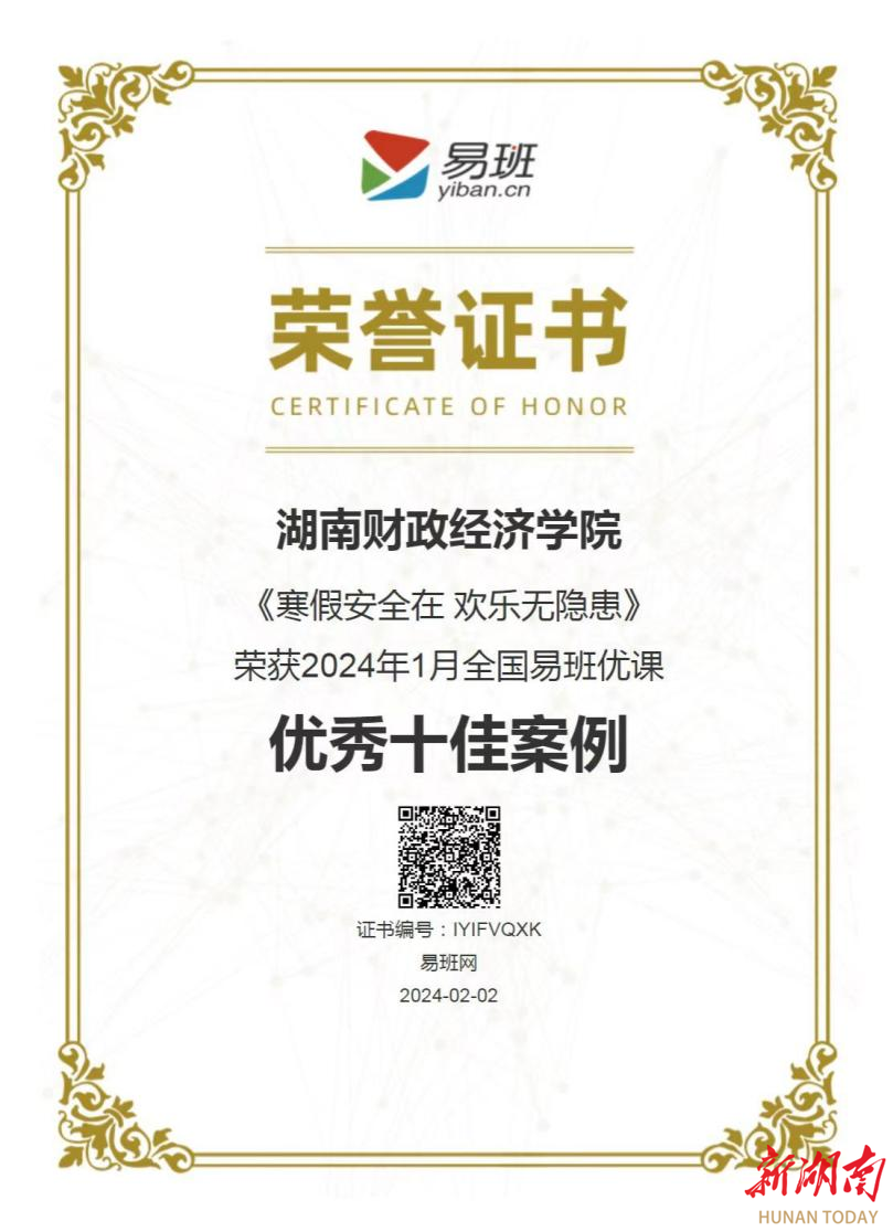 近日,教育部易班发展中心公布2024年1月全国易班优课优秀十佳案例,2026世界杯官网报送的《寒假安全在 欢乐无隐患》案例成功入选。