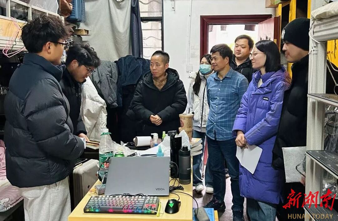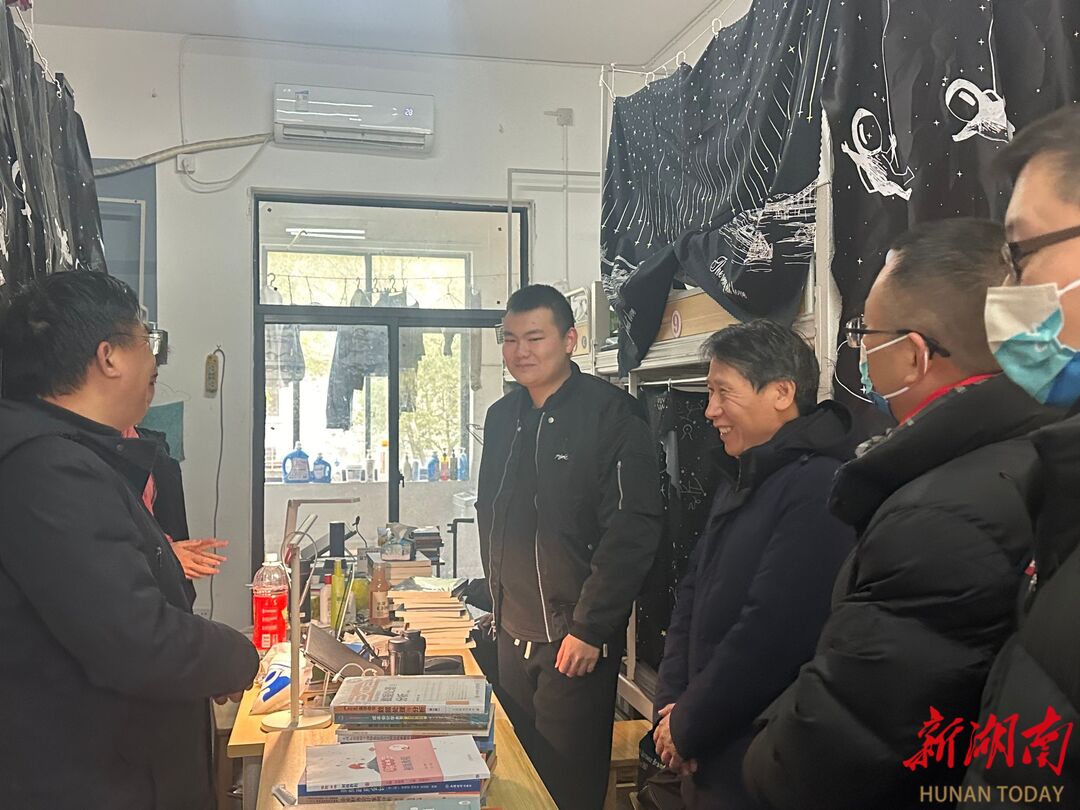 “同学你好,在学习和生活上有没有什么困难?工作找得怎么样了?天气冷要注意保暖,在寝室要注意用水用电安全……”宿舍里,老师们关切询问学生返校后学习生活情况,帮助同学们解决遇到的实际困难,同时也给同学们提出了新学期的期望,希望同学们继续勤奋刻苦学习、追求更高理想,用昂扬的精神面貌开启学习奋斗的新征途,筑梦圆梦新学期。