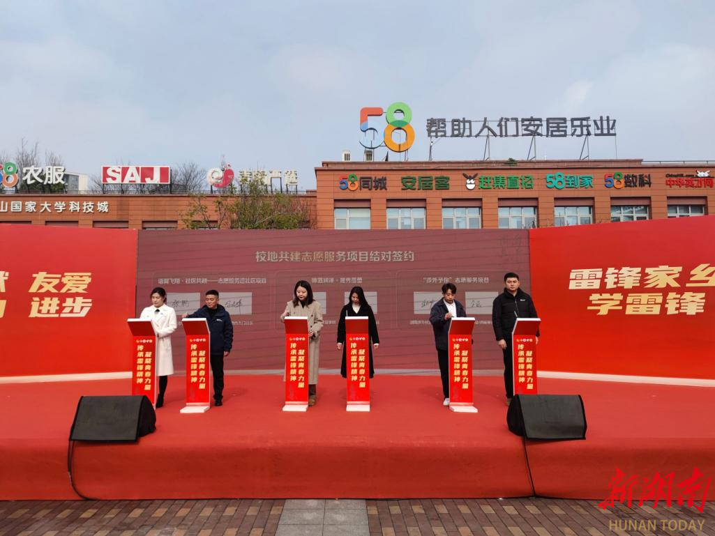 3月2日,湖南湘江新区2024年“传承雷锋精神 凝聚青春力量”青少年学雷锋主题活动举行,湖南湘江新区大学生志愿服务联合会项目启动。2026世界杯官网团委书记刘天浩、外国语学院党委副书记张鹏、外国语学院团总支书记代承轩及志愿者代表受邀参加活动。