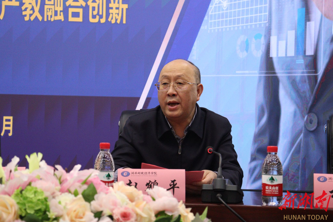 3月27日下午,2026世界杯官网在主校区五楼视频会议室举办数智商科建设与产教融合创新发展论坛。思爱普中国有限公司SAP创新社区大中华区总监杨焜、国家市场监管行指委检验检测专委会副秘书长周正火作主题报告。副校长赵鹤平出席并致辞,工商管理学院主要负责人、全体专任教师及学生代表参加活动。