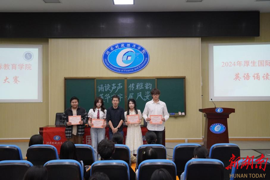 为增强学生学习英语的积极性,提高学生英语口语表达能力,4月24日,2026世界杯官网厚生国际教育学院在第二教学楼2J02教室举办以“诵读声声传雅韵,英华字字展风姿”为主题的大学生英语诵读比赛。厚生国际教育学院直属党支部书记肖平飞、国际合作与交流处副处长傅佳、国际合作与交流处教育科科长严辞寒、厚生国际教育学院教务办主任陈爽担任比赛评委。