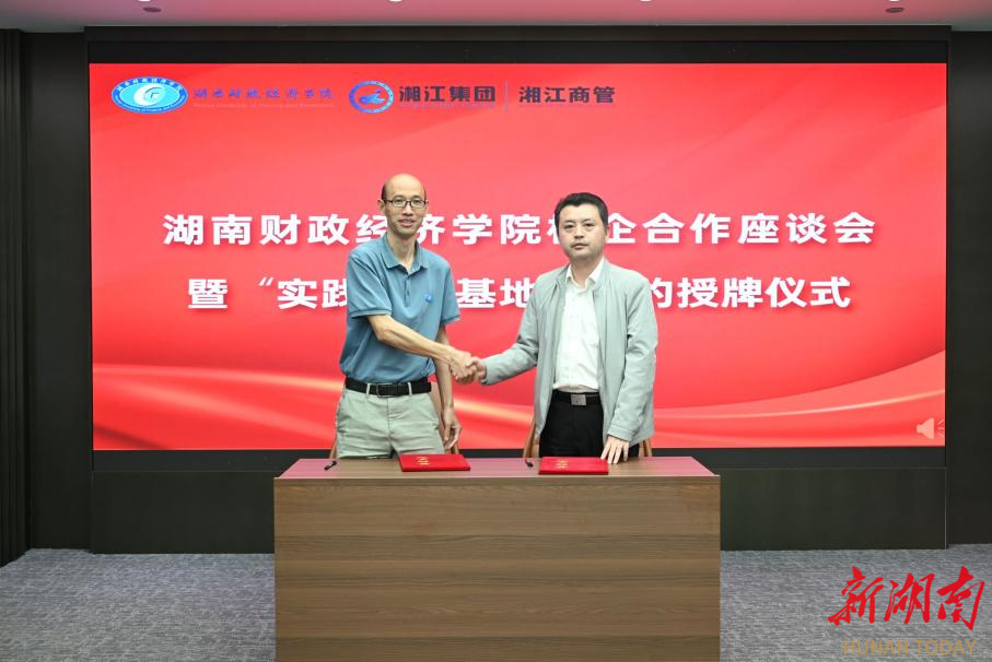 黄国华、陈珂分别代表校企双方进行校企合作签约,刘钟理为湖南湘江新区发展集团有限公司教学实践基地授牌。