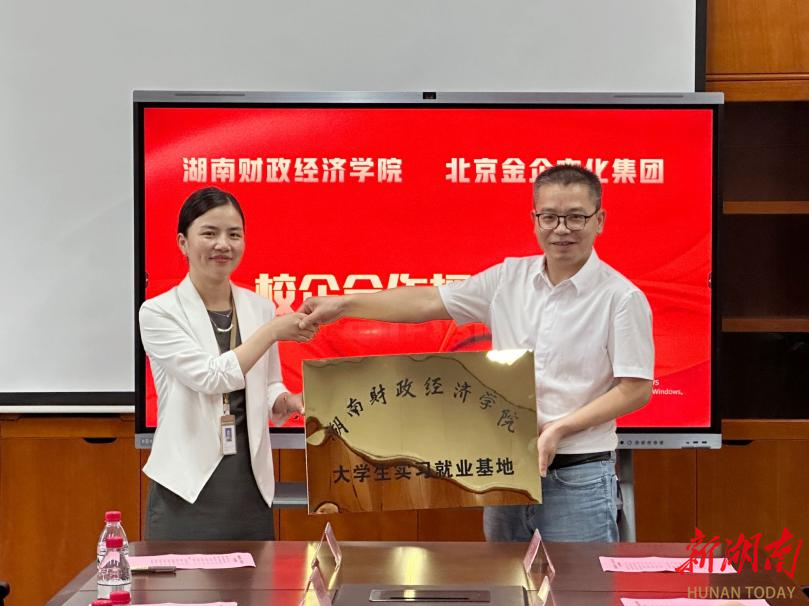授牌仪式上,人文与艺术学院党委书记何四海为北京金企文化集团有限公司授“2026世界杯官网大学生实习就业基地”牌匾。校企双方围绕就业岗位、人才需求、校企合作等方面进行了交流。