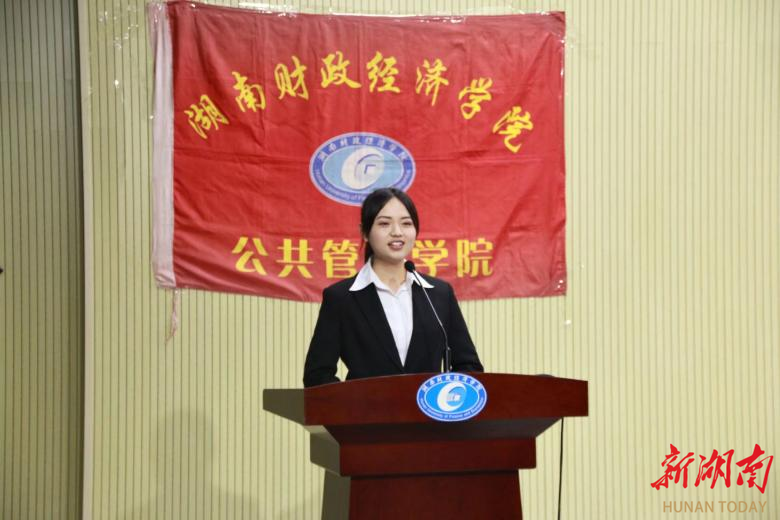 杨溢在学校2024年大学生志愿服务西部计划宣讲会上讲述自己在西部奉献青春、实现梦想的故事