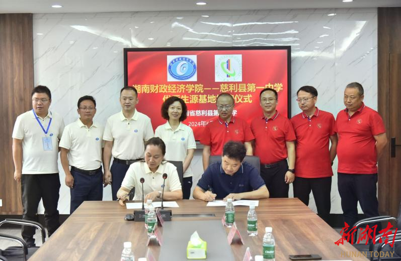苏玲(前排左)与慈利县第一中学签订优质生源基地共建协议