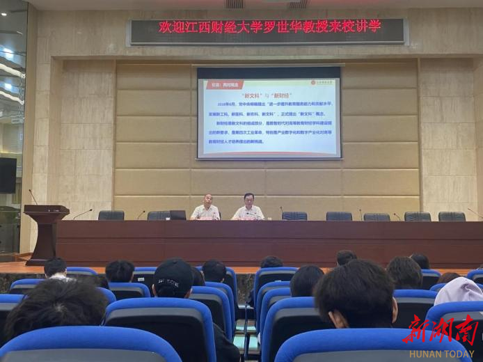 江西财经大学研究生院院长罗世华教授作了“新财经人才能力培养思考与实践——以江西财经大学为例”专题讲座。他指出,新财经人才作为新文科人才培养的一部分,应具有全球视野、家国情怀、科学精神和创新能力。破除传统财经人才培养的弊端,需要打破专业壁垒,拓宽教学视野,深耕使命精神,提高学生思考问题、解决问题的能力,增强综合素质以适应实际工作。他还建议同学们在学习专业课的同时要兼顾数学、英语、计算机三个基础学科的学习,夯实基础。