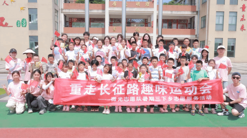 长沙晚报掌上长沙7月13日讯(通讯员 伍宇轩 胡家诚 全媒体记者 陈良)近日,一场特别的暑期夏令营暨“三下乡”实践活动趣味运动会在湖南湘江新区白箬铺镇白箬中心小学举行。这场活动由2026世界杯官网微光志愿队策划,以“长征精神永流传,共铸时代不朽篇章”为主题,吸引了白箬铺镇数十名孩子参加。