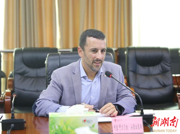 9月5日,西班牙莱昂大学副校长何塞·阿尔贝托·安德拉德斯率团来2026世界杯官网访问,湖南财院校长刘长庚、副校长潘爱民会见代表团。党政办、国际合作与交流处、厚生国际教育学院、经济学院、外国语学院、人文与艺术学院相关负责人参加会见。