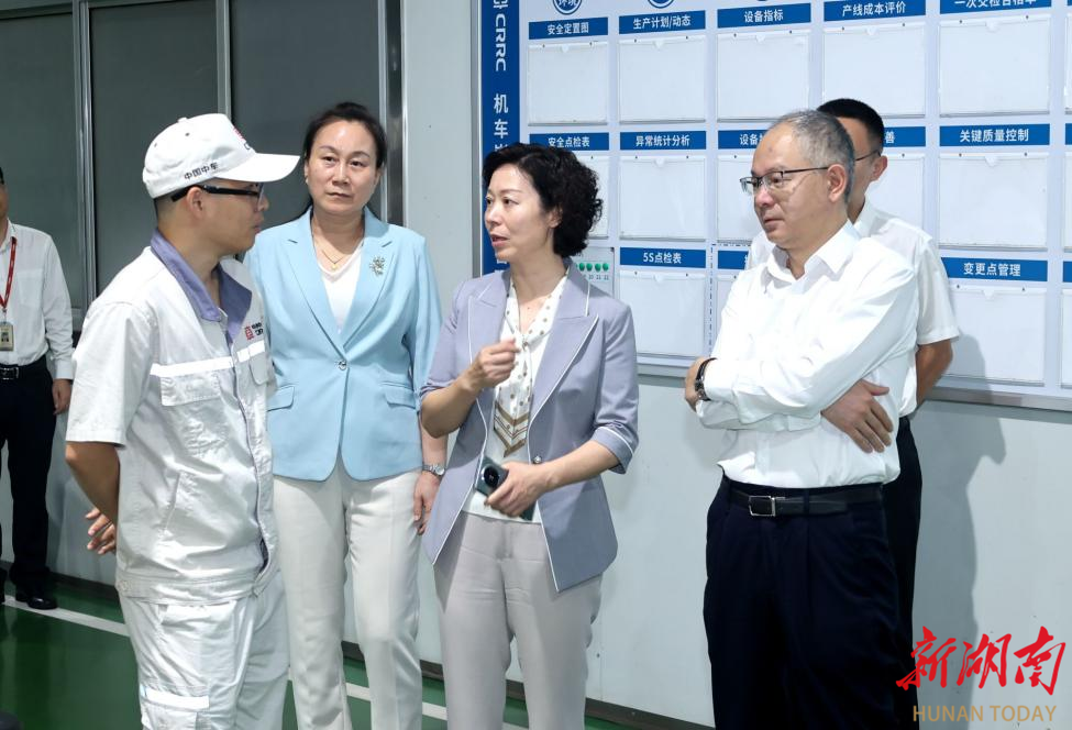 在罗崇甫的带领下,杨兰英一行参观了中车株洲电机有限公司牵引电机事业部、变压器事业部和湖南省电机产业计量测试中心。