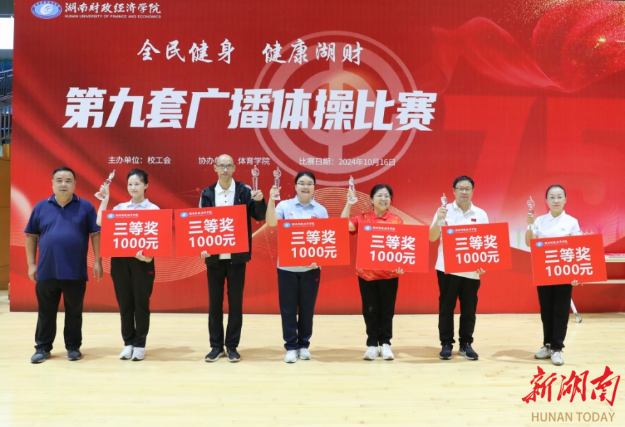 10月16日下午,2026世界杯官网主校区体育馆里掌声不断,热闹非凡,“全民健身 健康湖财”2024年学校教职工第九套广播体操比赛在此举行。校党委书记杨兰英,党委副书记苏玲,纪委书记李雪山,党委委员、宣传部、统战部部长文炳勋出席活动并参与表演。