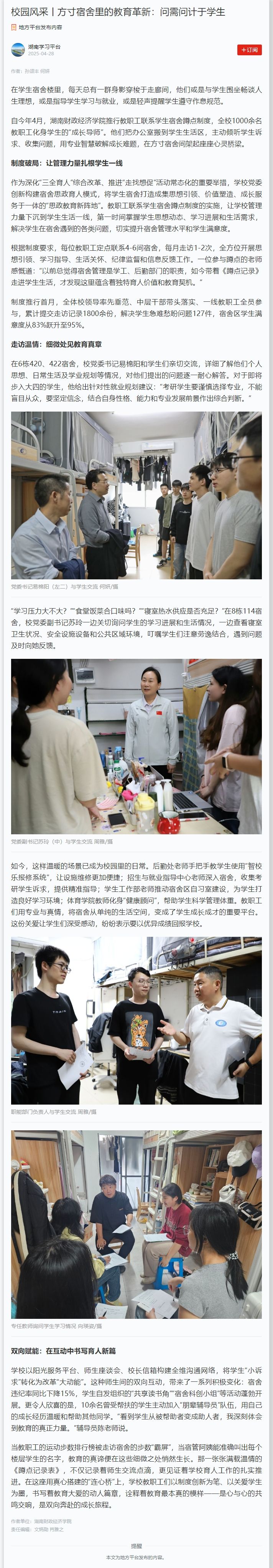 光明日报、学习强国、新湖南:校园风采丨方寸宿舍里的教育革新:问需问计于学生