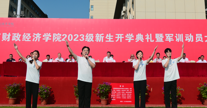 朗朗金秋,田径场内悬挂的“立大志、明大德、成大才、担大任,努力成为堪当民族复兴重任的时代新人”“重教学、强科研、优管理、精服务,矢志建设财经特色鲜明的应用型一流大学”等标语分列两侧、振奋人心。伴随着雄壮的国歌声,五星红旗冉冉升起,全体师生肃立注目,开学典礼拉开序幕。