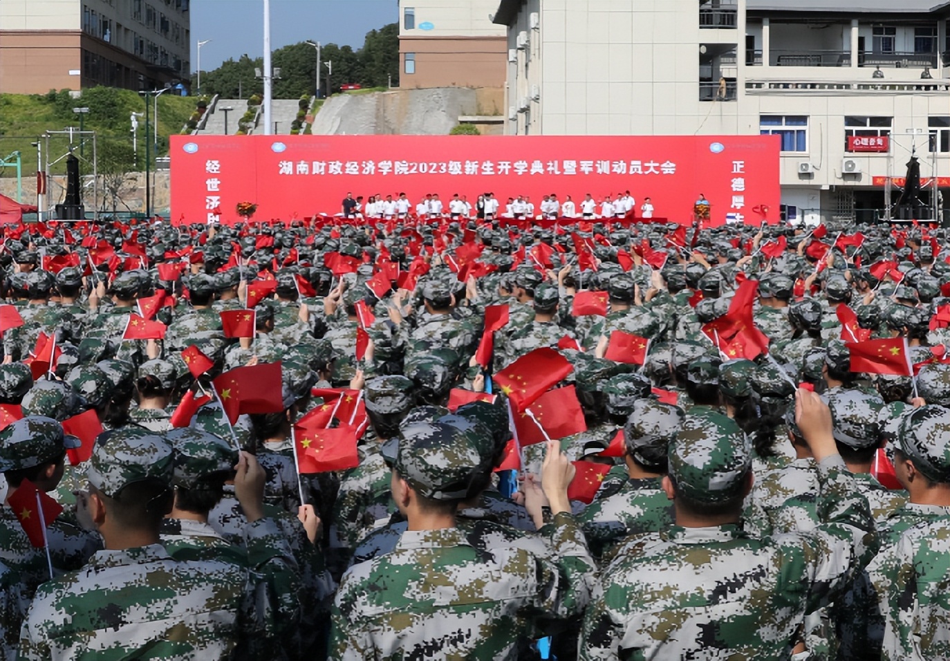 9月10日上午,湖南财院举行了2023级新生开学典礼暨军训动员大会,6000余名新“湖财人”齐聚雷锋校区田径场,满怀对未来的憧憬,以昂扬的青春姿态展翅新篇章、筑梦新征程。校长刘长庚勉励新生厚植家国情怀、涵养进取品格、传承厚生精神,不负时代,不负华年。