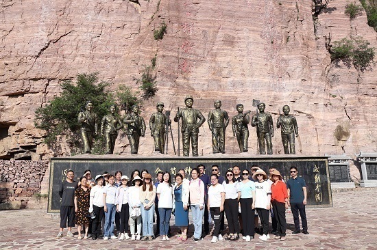 在辉县市回龙村,回龙村支部书记张荣锁带领群众冒着生命危险,辟山凿洞,攻坚克难,在自古无路的悬崖峭壁上,筑起生存路、团结路、致富路、幸福路的壮举令老师们动容。随后,老师们穿越回龙挂壁公路,在实景中深切体悟艰苦创业、勇于担当、无私奉献、战天斗地的回龙精神。