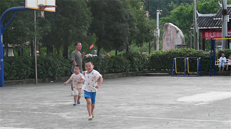 (图为借母溪村小学生奔向普法宣讲地 刘清华摄)