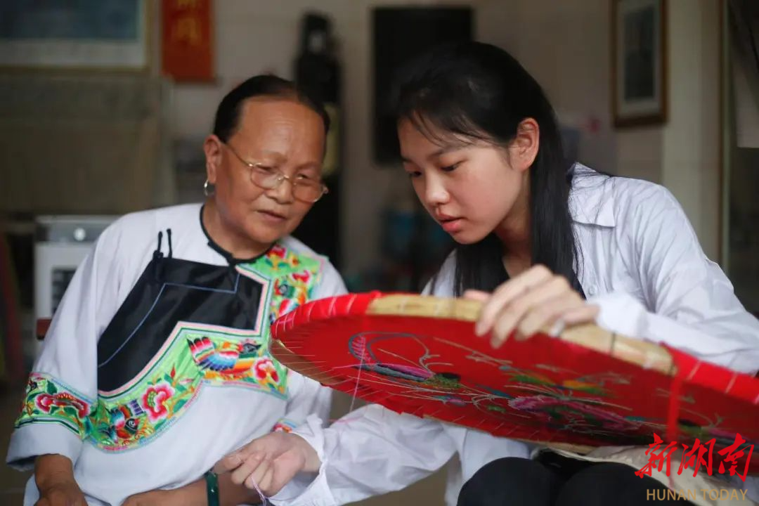 在夯吉村,实践队员走进苗绣匠人梁思满的家中,了解苗绣的传承历史和现状。同学们在她的指导下,体验苗绣技巧和心法。每幅苗绣作品需要需要匠人反复操作,经过十几个小时甚至数十天的制作才能完成。针对苗绣传承后继乏人和宣传不畅等问题,实践队员通过短视频直播、社交媒体传播等方式,为吕洞山苗绣开展了新媒体营销活动。