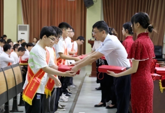 欢送会后,与会领导向退役复学毕业生代表颁发纪念勋章、向西部计划志愿者代表赠送书籍和纪念品。