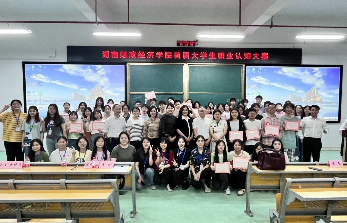比赛现场,各组学生以演讲、PPT展示、现场答辩等方式,讲解各自的职业规划,展示认知成果,并回答评委的提问。选手们的精彩表现赢得了现场观众和评委的一致好评。经过激烈角逐,罗雨薇等同学组获得特等奖,简璐等同学组获得一等奖,雷诗琪等同学组获得二等奖,陈虹艳等同学组获得三等奖。凌飞、刘东艳及全体评委为获奖学生颁发了荣誉证书。