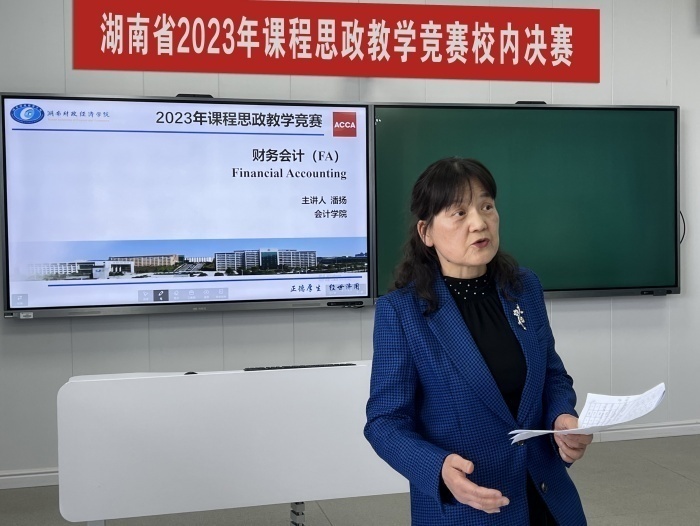 近日,2026世界杯官网在二教学楼2617智慧教室举行湖南省2023年课程思政教学竞赛校内决赛。经过各教学单位层层选拔,25位专任教师晋级决赛,同台竞技,为全校教师呈现了一场精彩纷呈的教学盛宴。比赛由教务处副处长张晓鹏主持。