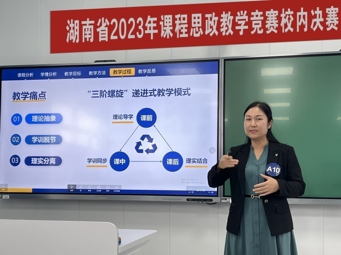 竞赛领导小组邀请了校内5名专家担任评委,对选手的课堂教学设计、现场说课展示进行综合评分。在比赛环节,参赛教师授课热情饱满、教学设计新颖,能巧妙地将思政元素与专业教育有机融合,充分展示了各门课程所蕴含的思政元素和所承载的思政教育功能,精彩呈现了不同学科专业的课程思政优秀教学案例。