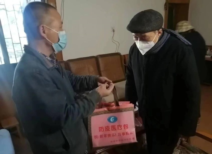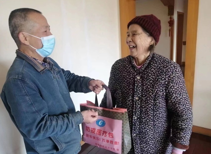 离退休工作处负责人为老同志发放“防疫医疗包”