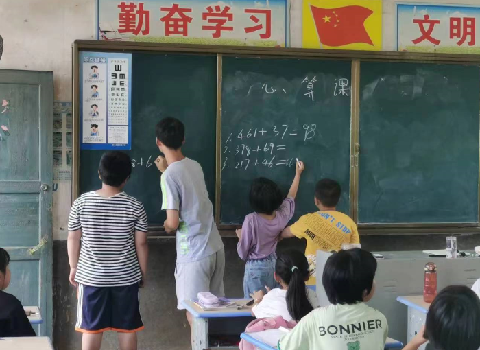 实践队队员为孩子们上心算课 曹双琦/摄