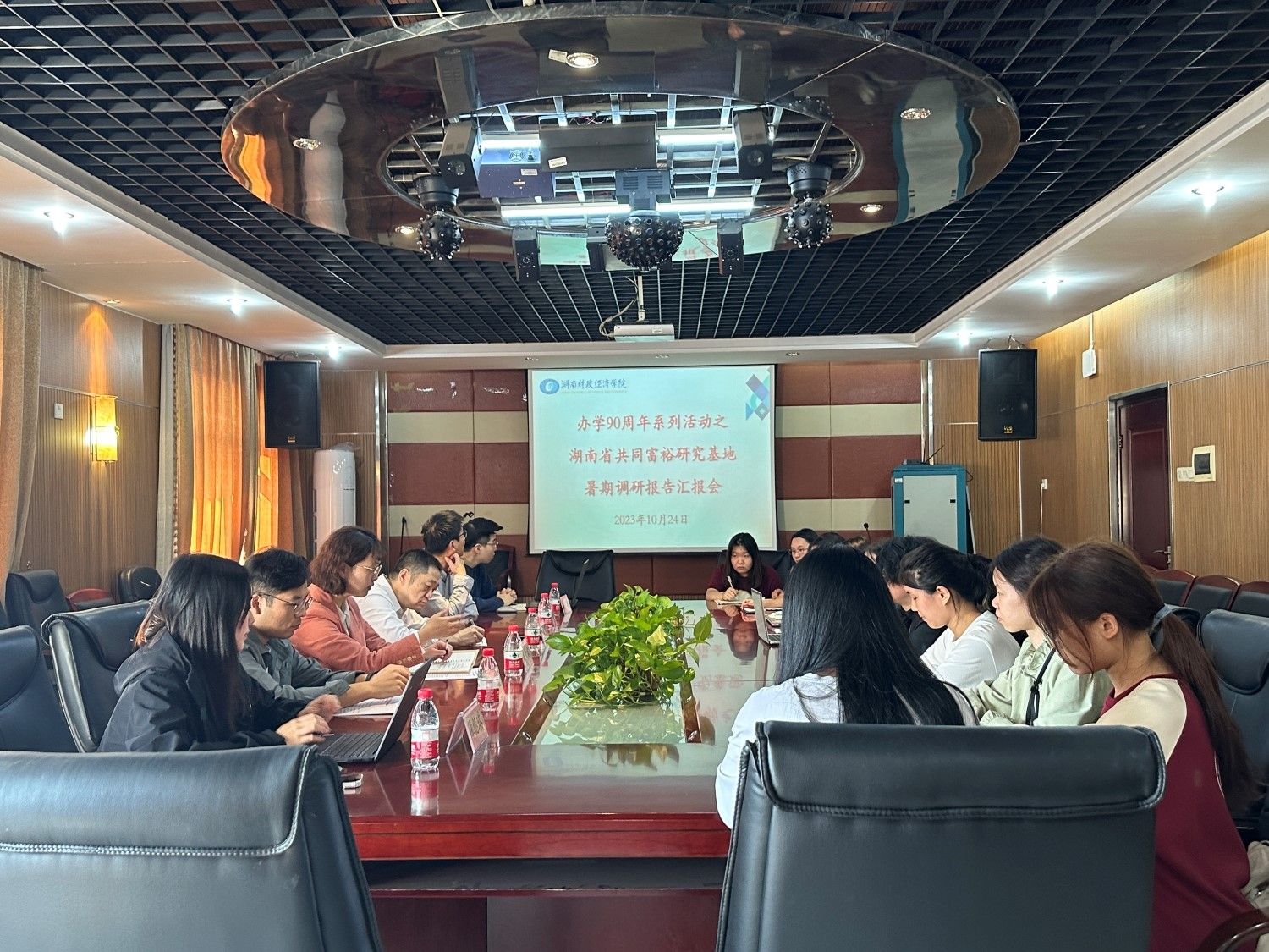 (本网讯)10月24日下午,湖南省共同富裕研究基地在学校办公楼1014会议室召开暑期调研研究报告汇报会。湖南省共同富裕研究基地负责人肖湘愚教授、基地成员王玉喜、联合培养硕博生代表以及经济学院本科生代表参加会议。会议由经济学院副院长彭千芮主持。