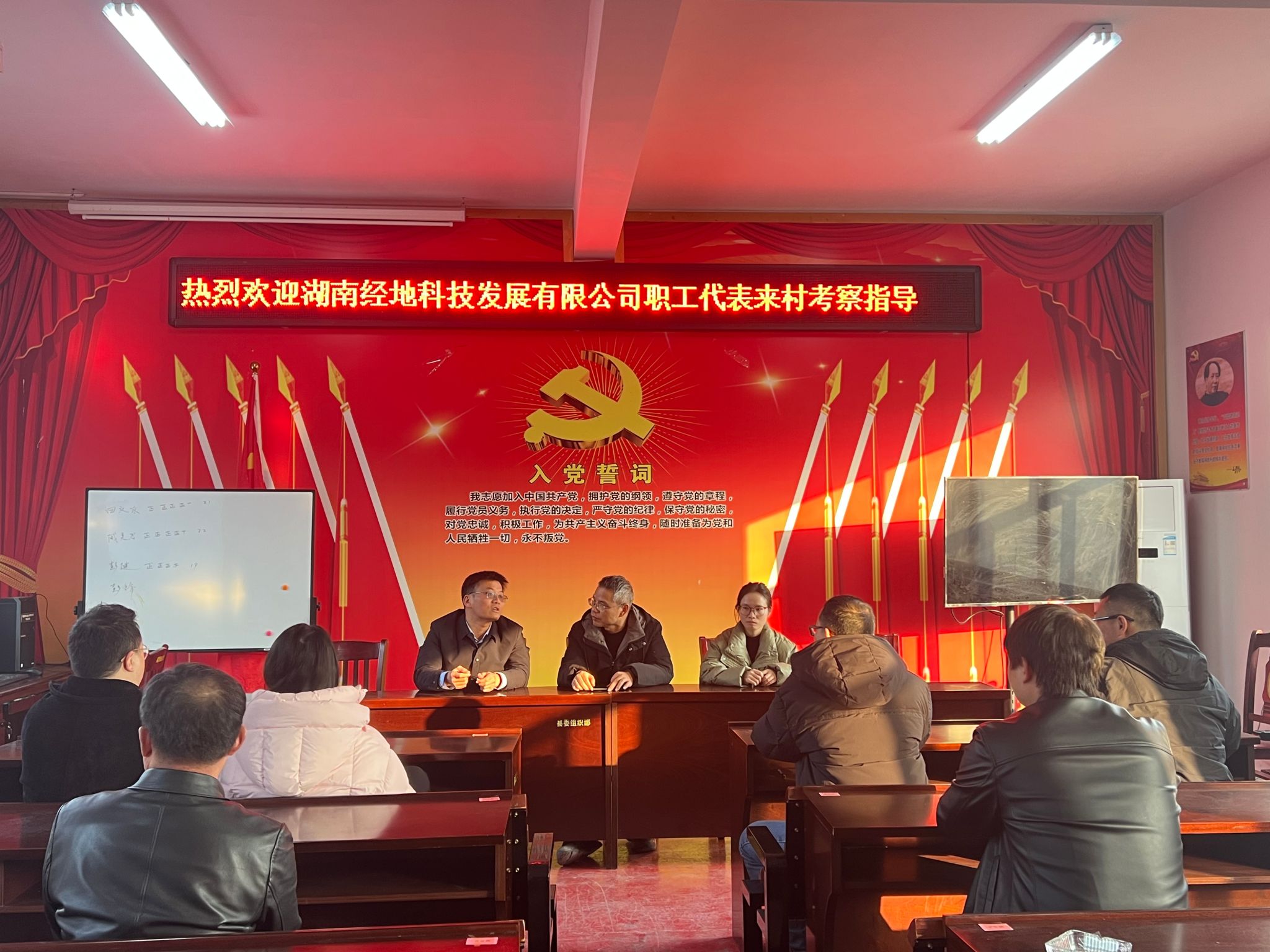 在随后举行的座谈交流中,与会人员围绕土地利用现状、河道清淤疏浚、消费帮扶举措、特色农业培育、直播基地建设和村庄规划实施等主题进行了深入探讨。大家踊跃发言,提出了有针对性的指导意见。